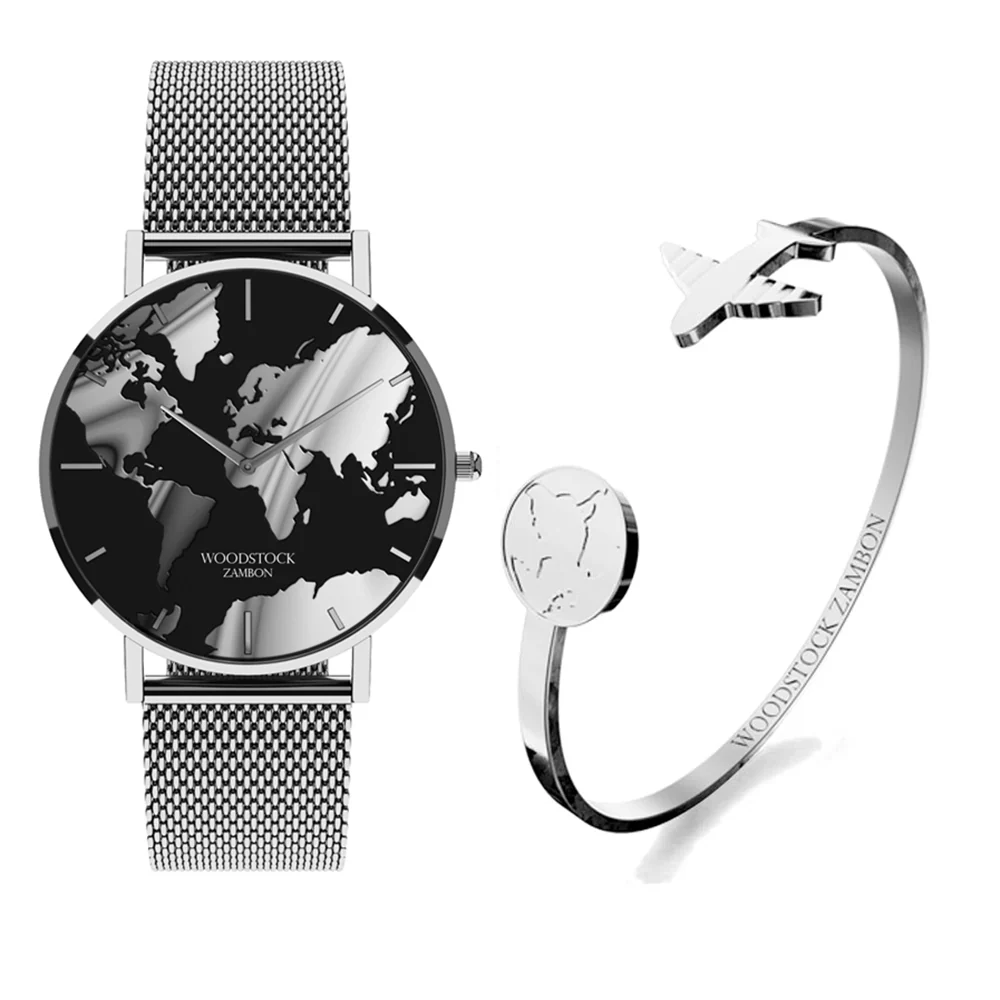 A tribute to explorers, dreamers, and wild souls, this iconic duo brings together our best-selling world map watch and the signature Gipsy bracelet — with a tiny airplane flying toward the unknown.